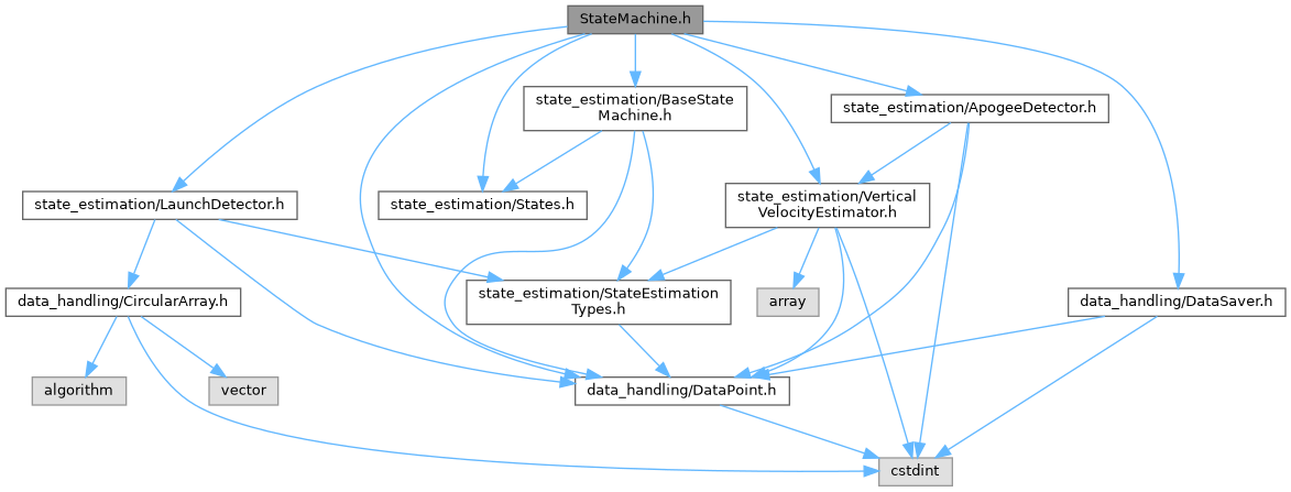 #include "state_estimation/States.h"#include "state_estimation/ApogeeDetector.h"#include "state_estimation/LaunchDetector.h"#include "state_estimation/VerticalVelocityEstimator.h"#include "state_estimation/BaseStateMachine.h"#include "data_handling/DataPoint.h"#include "data_handling/DataSaver.h"